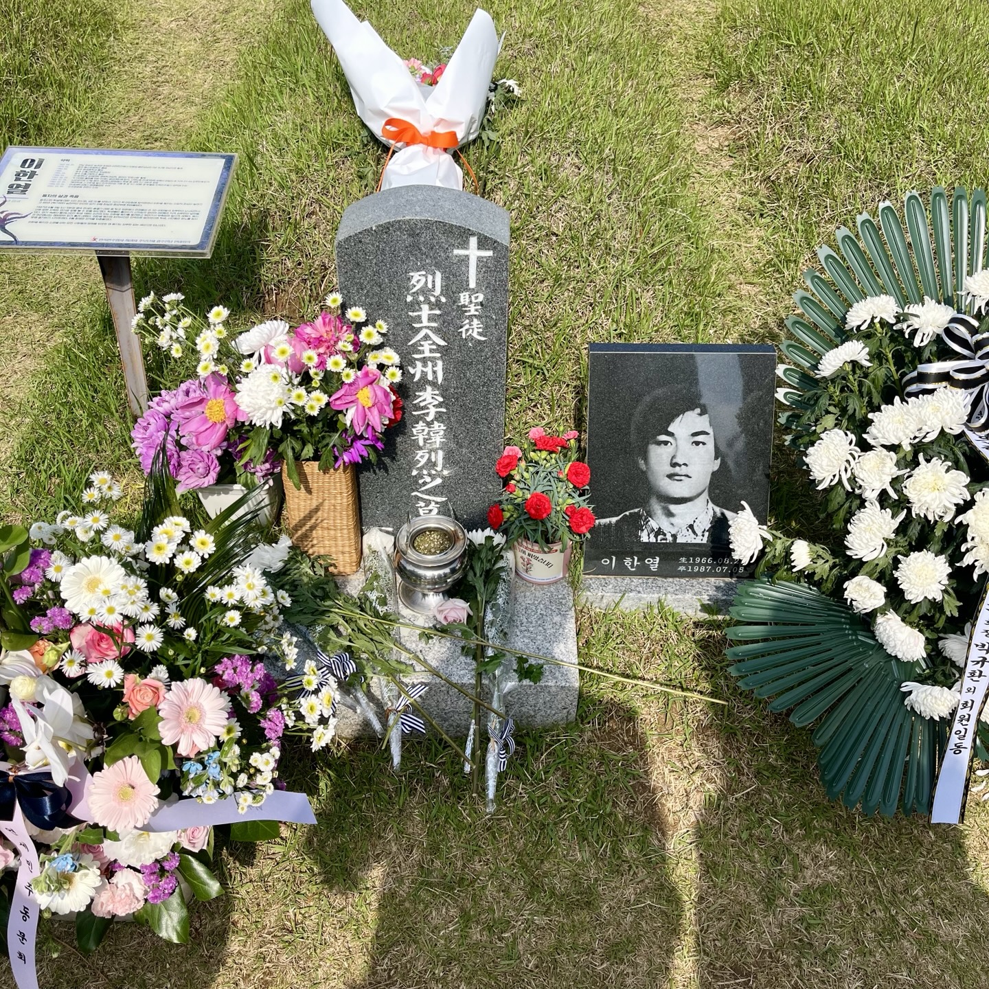 망월묘지에는 이한열 열사의 묘도 있어요. 이한열 열사는 1987년 6월 9일 전두환 독재정권 타도와 5.18진상규명을 요구하는 시위에 참석하던 중 전경이 쏜 최루탄에 머리를 맞고 세상을 떠나게 됐는데요.😢 이한열 열사의 죽음은 6월 항쟁으로 이어졌고, 대통령 직선제로 바뀌는 결정적인 계기가 됐어요.🗳️