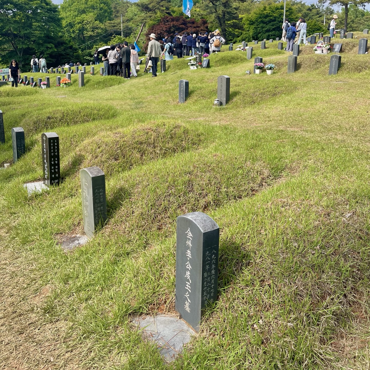 국립 5.18 민주묘지 바로 옆에는 망월공원묘지가 있어요.🪦 광주의 아픈 역사를 지닌 곳으로 한국 민주주의의 성지와도 같은 곳인데요. 망월묘지는 5.18광주민주화운동 당시 신군부에 의해 무참하게 희생된 시민들이 처음 안장된 곳이라고. 당시 정부는 진상을 은폐하기 위해 광주에서 외곽에 떨어진 이곳에 시신들을 묻었어요.🪖